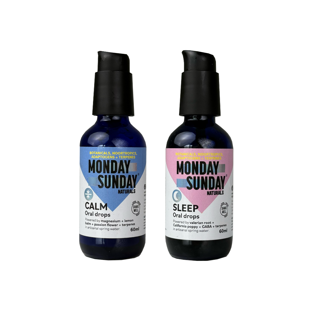 Experience the perfect pairing of MONDAY—SUNDAY’s Calm and Sleep formulas. This powerful duo combines the therapeutic benefits of terpenes with high-potency herbs to help you maintain balance, reduce anxiety, and sleep deeply—every single day.